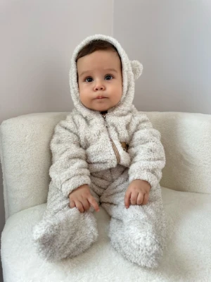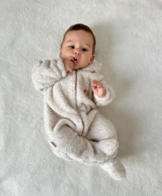 Ayıcık desenli çizgili içi polarlı kışlık takım
