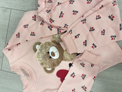 Ayıcık desenli çizgili içi polarlı kışlık takım