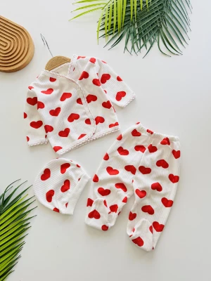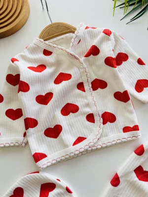 Büyük kalpli şapkalı 3 lü yenidoğan seti