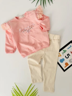 Çiçek nakışli omuzları güpürlü 2 li takım