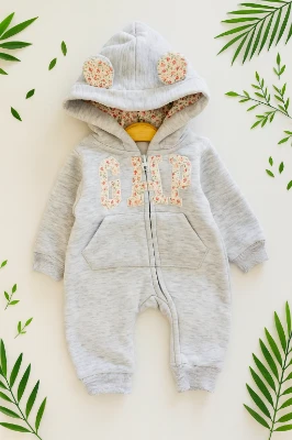 Gap yazılı çiçek detaylı kapüşonlu tulum