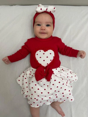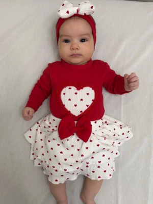 🤍 Kalp Detaylı Body, Kalpli Etek & Bandana Takım 🎀