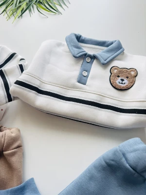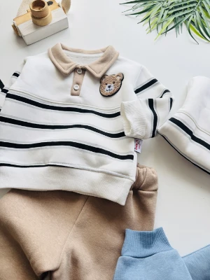 Ayıcık desenli çizgili içi polarlı kışlık takım