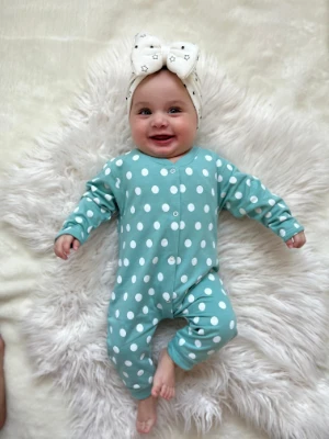 Puantiyeli yeşil mevsimlik tulum